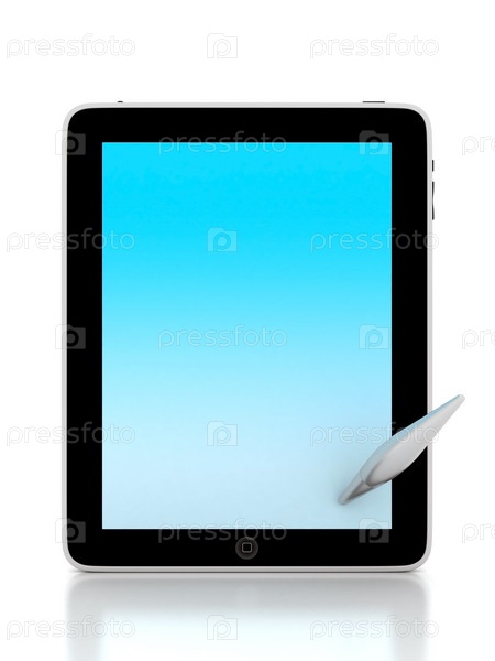 Сенсорный карманный компьютер с пером на белом фоне