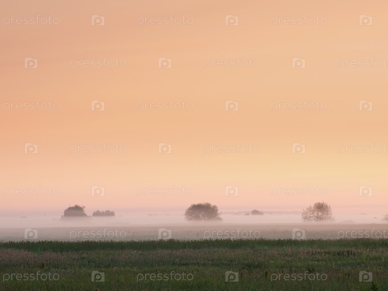 Туман над полями на восходе солнца