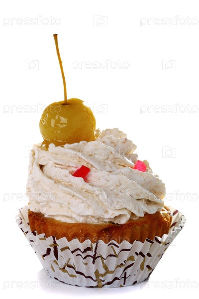 Пирожное со взбитыми сливками, изолировано на белом фоне