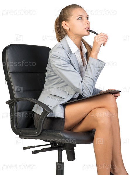Бизнес-леди в кресле на белом фоне