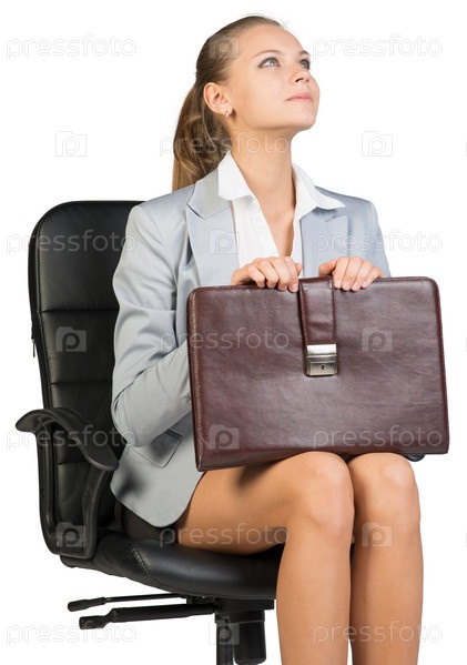 Бизнес-леди в кресле на белом фоне