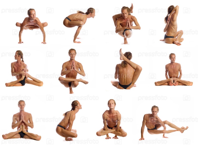 Человек делает йогу изолированной на белом
