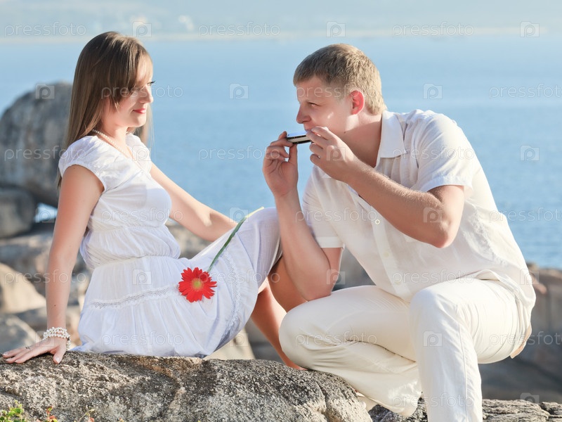 Молодой человек играет на губной гармошке для своей возлюбленной