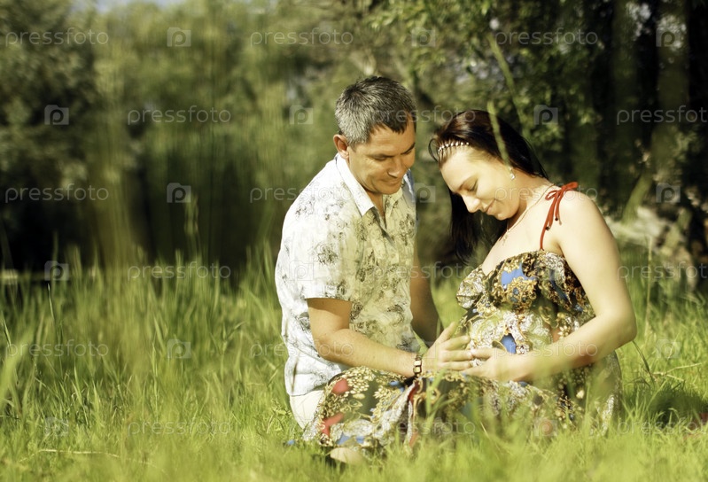 Мужчина и беременная женщина отдыхают на природе