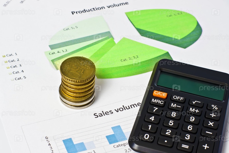 Диаграмма, монеты и калькулятор
