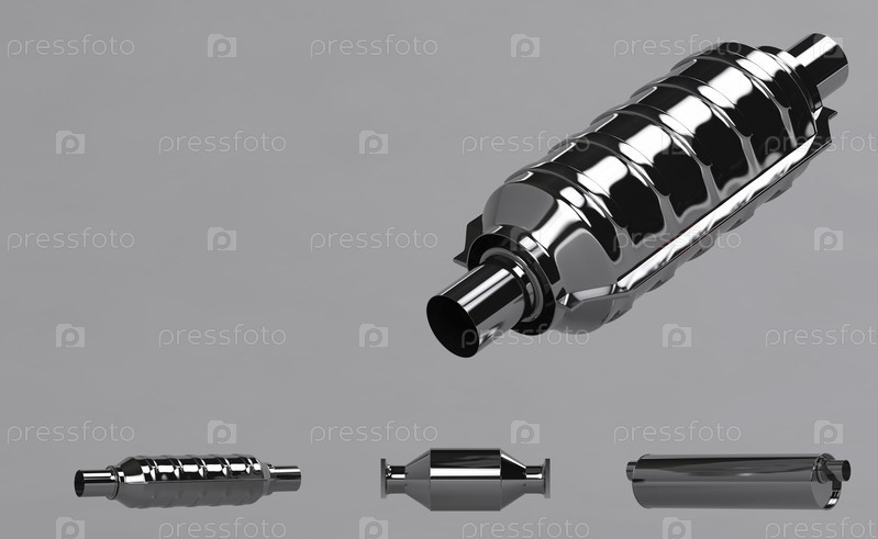 Коллекция глушителей, 3D-графика на сером фоне