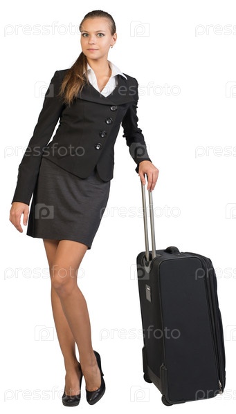Бизнес-леди с чемоданом на белом фоне