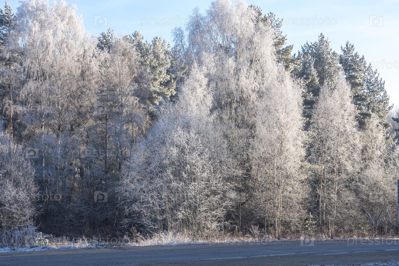 Красивый пейзаж с деревьями в инее