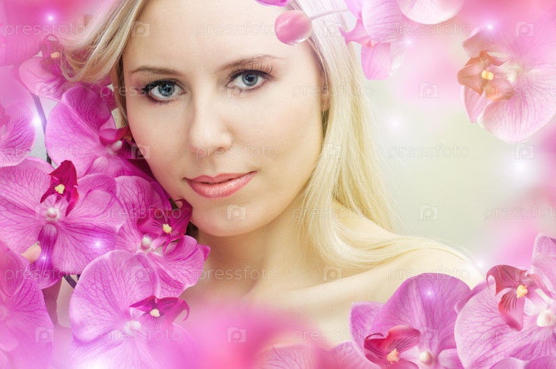 Красивая цветочная девушка на размытом фоне