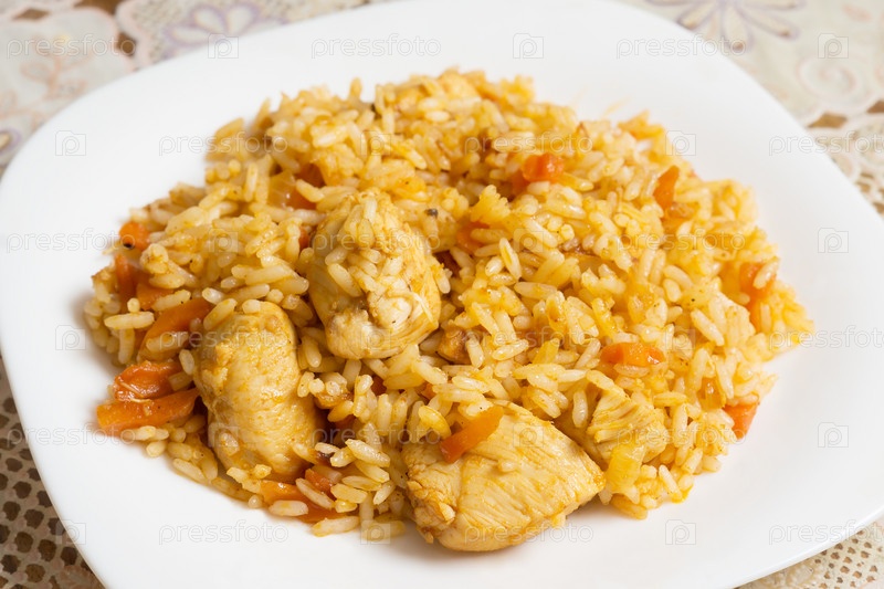 Вкусный плов в тарелке