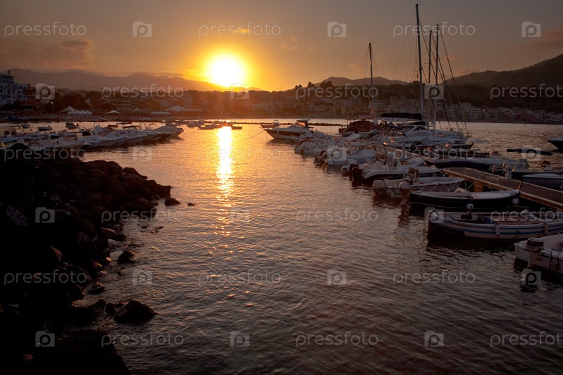 Закат в порту Джардини Наксос, Сицилия