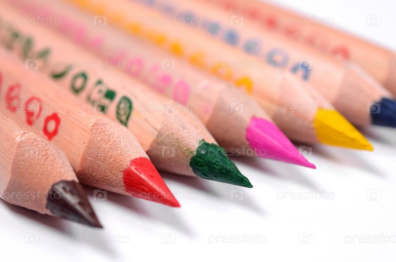 Набор цветных карандашей на белом фоне