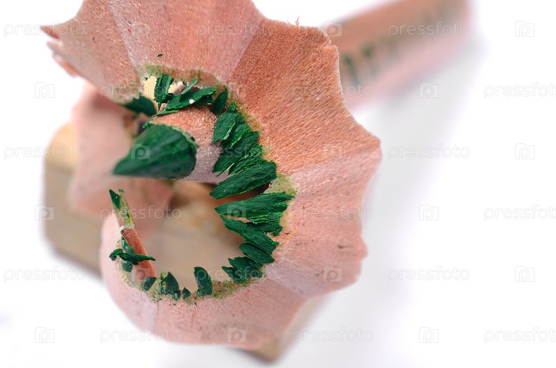 Зеленый карандаш, точилка и стружка
