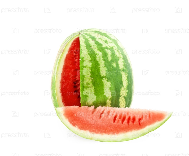 Зрелый нарезанный арбуз на белом фоне