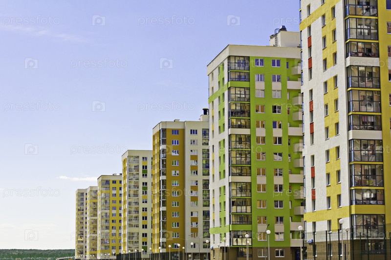 Новый микрорайон на фоне синего неба