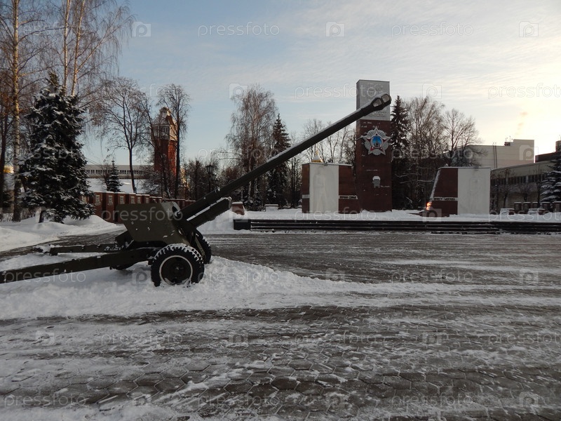 Площадь Победы с оригинальной артилерией военных времен