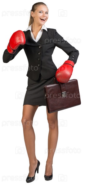 Бизнес-леди в боксерских перчатках