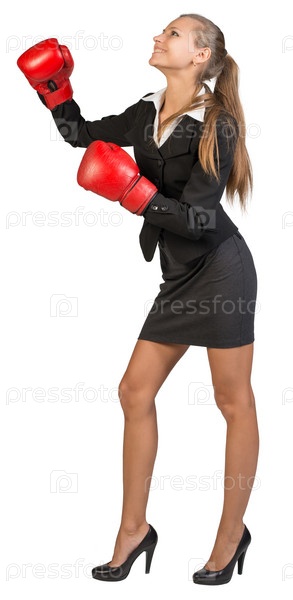 Бизнес-леди в боксерских перчатках