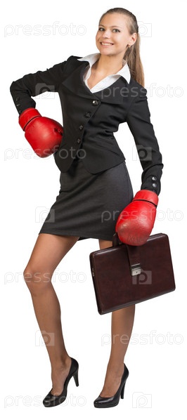 Бизнес-леди в боксерских перчатках