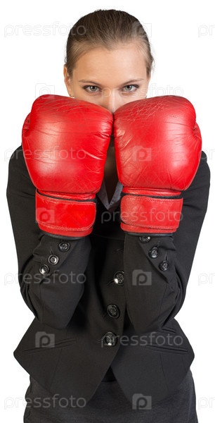 Бизнес-леди в боксерских перчатках