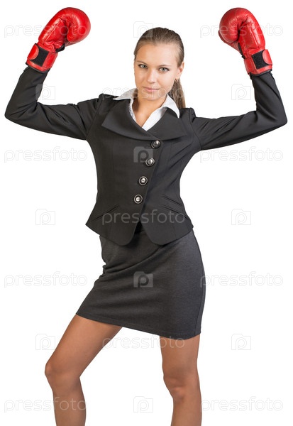Бизнес-леди в боксерских перчатках