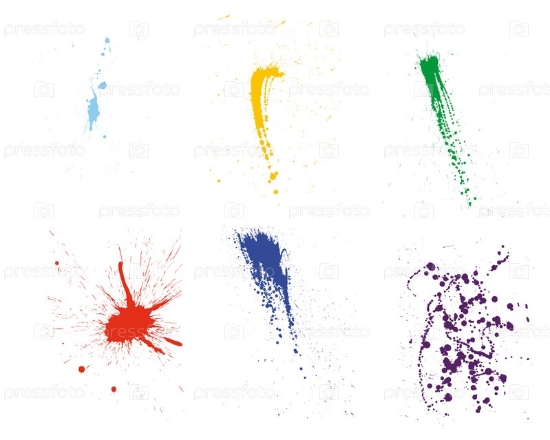 Разноцветные кляксы на белом фоне, набор из шести элементов