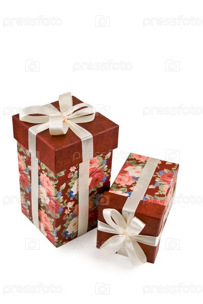 Подарочные коробки на белом фоне