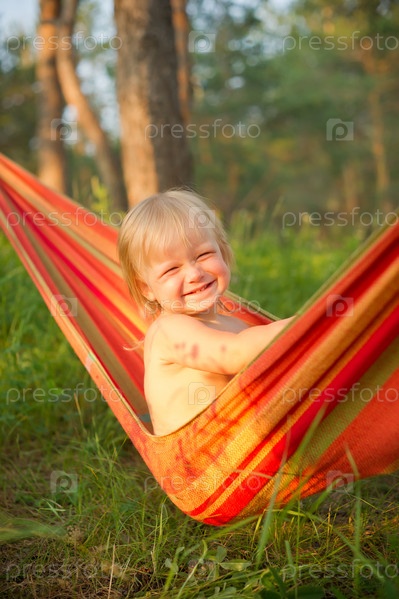 Очаровательный ребенок в гамаке на природе