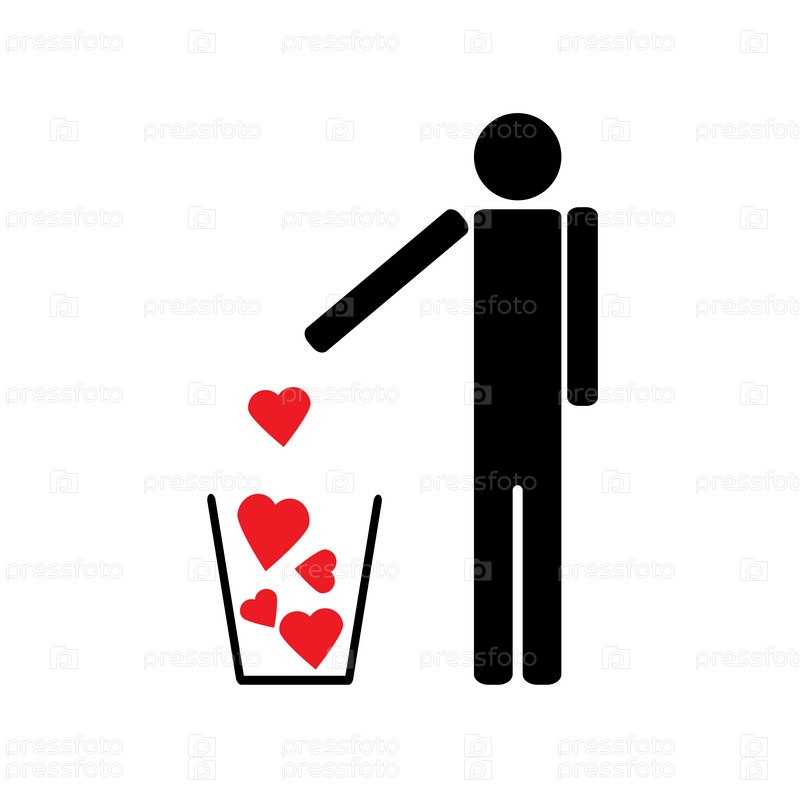 Человек выбрасывает несколько красных сердечек в корзину