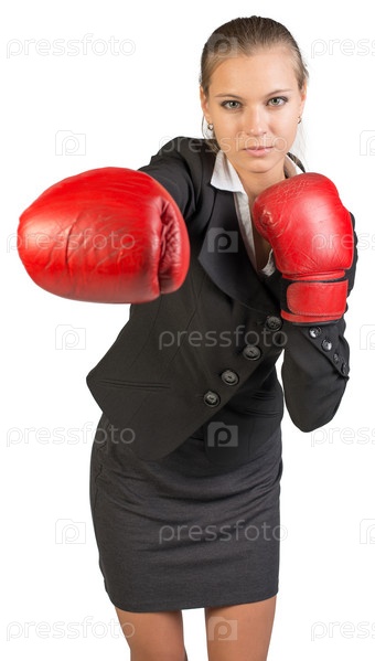 Бизнес-леди в боксерских перчатках