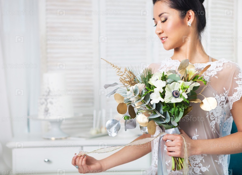 Необычный свадебный букет в руках невесты