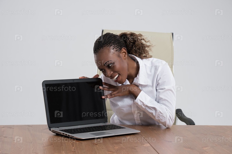 Деловая женщина смотрит на дисплей ноутбука