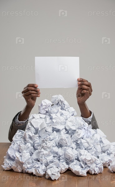 Бизнес-леди, заваленная мятой бумагой