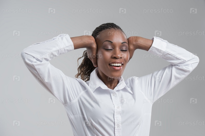 Бизнес-леди на сером фоне