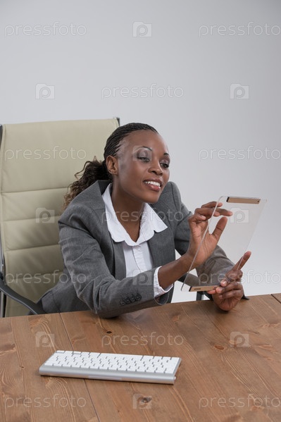 Бизнес-леди с планшетом в офисе