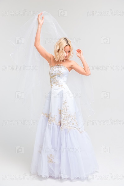 Невеста в свадебном платье в студии
