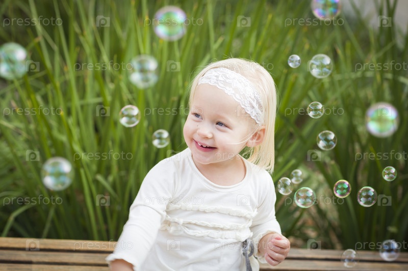 Очаровательная девочка пускает мыльные пузыри