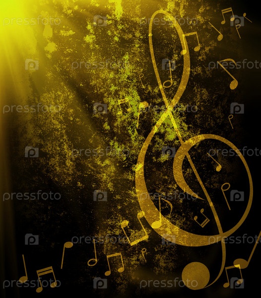 Темный фон с музыкальным ключом и нотами