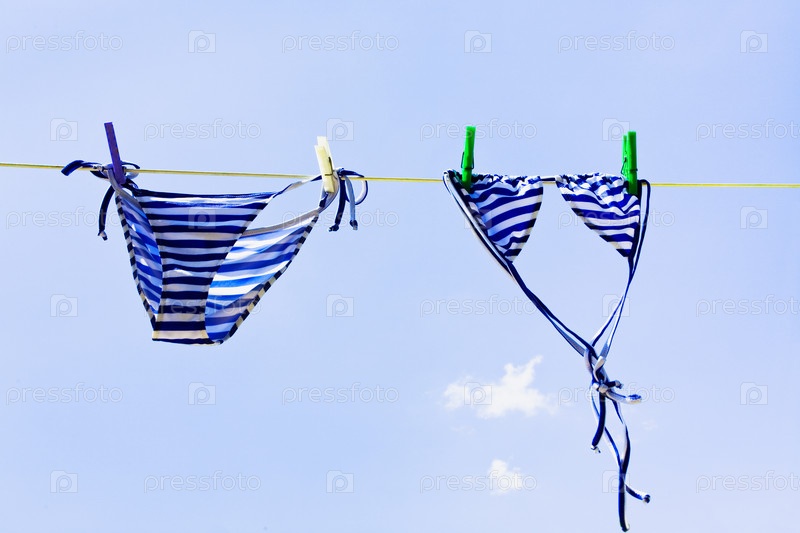 Женский купальник сушится на веревке