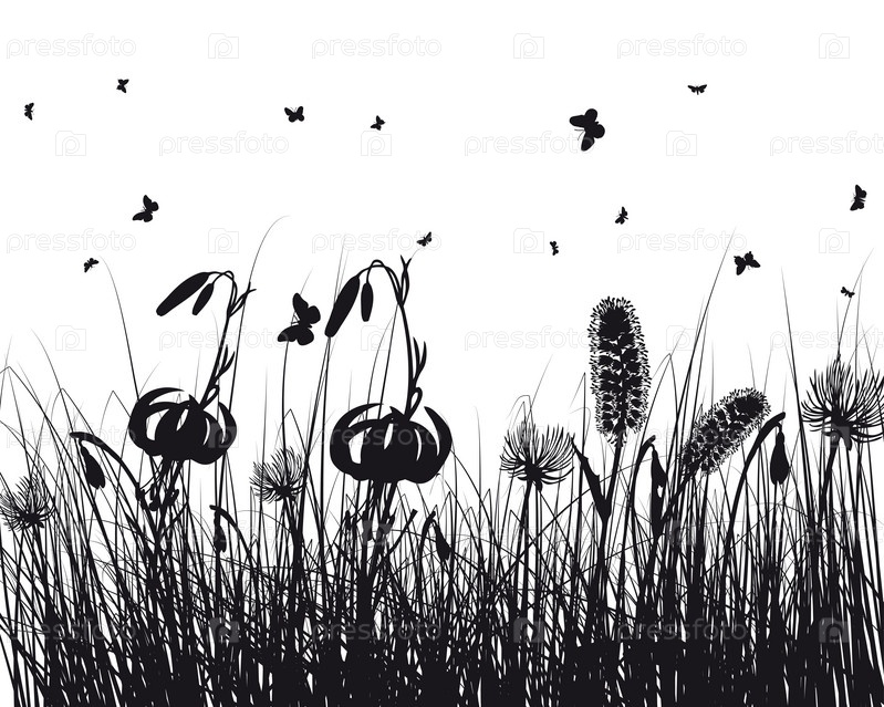 Векторные силуэты трав на белом фоне