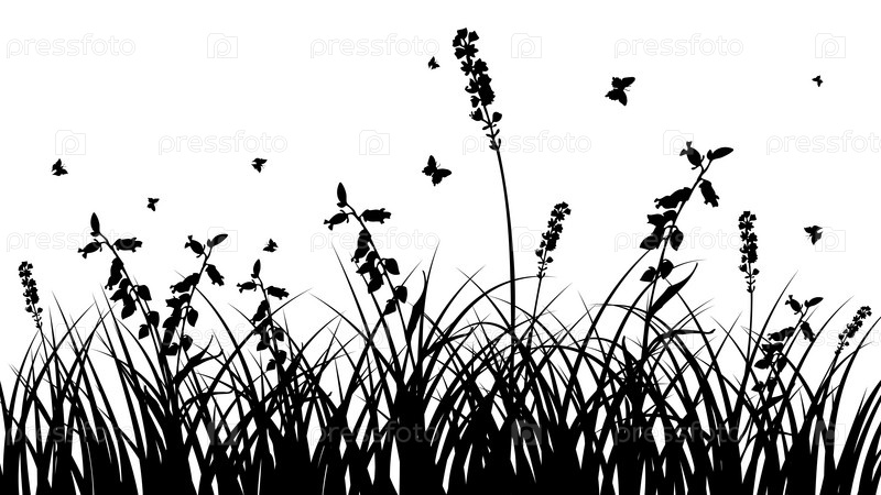 Силуэты травы и цветов на белом фоне