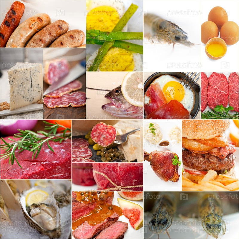 Коллаж из пищи с высоким содержанием белка