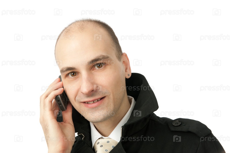 Портрет молодого бизнесмена, разговаривающего по телефону