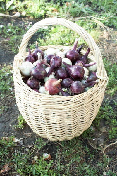 Лук в плетеной корзинке
