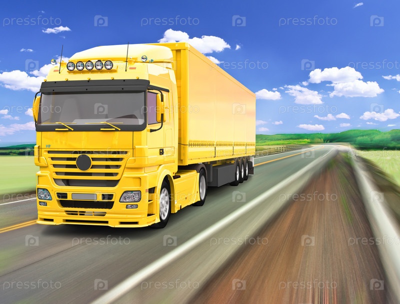 Современный грузовик на дороге