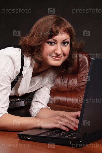 Деловая женщина работает на ноутбуке