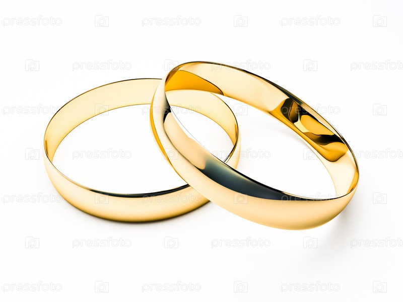 Обручальные кольца крупным планом на белом фоне с тенью