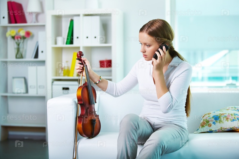 Девушка со скрипкой разговаривает по телефону