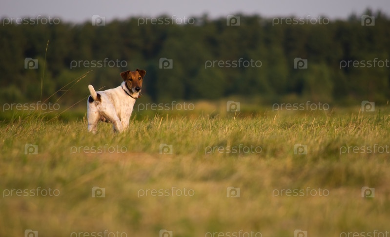 Собака в зеленом поле