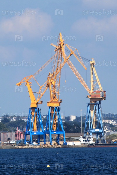 Башенные краны в порту города Брест, Франция